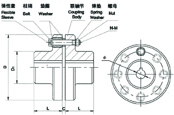 彈性套柱銷聯軸器的許用相對位移: 徑向位移:0.2~0.6mm 角位移:0°30′~1°30′