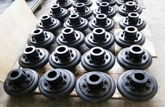 輪胎聯軸器分為凸型輪胎聯軸器和凹型輪胎聯軸器兩大類,凸型輪胎聯軸器又分為帶骨架整體式輪胎聯軸器、無骨整體式輪胎聯軸器和徑向切口式輪胎聯軸器三種。輪胎環內側用硫化方法與鋼質骨架粘接成一體,骨架上的螺栓孔處焊有螺母。