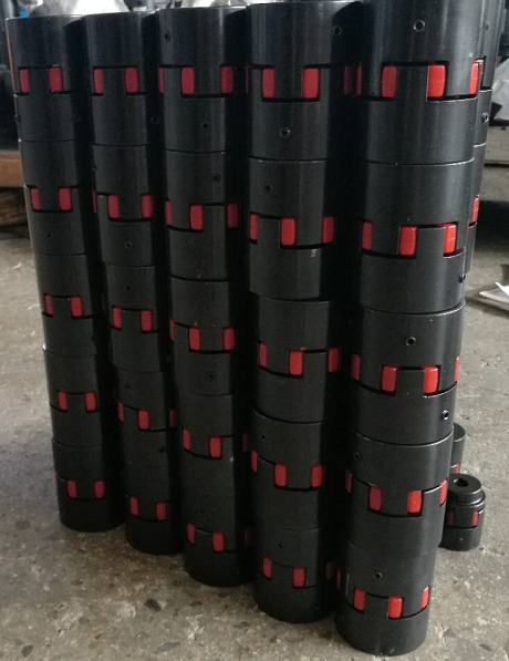 3.星型聯軸器 彈性聯軸器   撓性聯軸器 加緊星型聯軸器 的彈性體由凸型爪塊限制,可以避免由于沖擊產生的內部變形及離心力產生的外部變形。凸爪大的凹面,使漸開線齒上的表面麗很小,齒上即使承受過載,齒仍然不會變形。