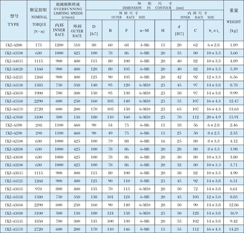 CKZ-A系列為楔塊式單向離合器,內(nèi)含兩套深溝球軸承支撐及油封。依照不同需要,出廠時(shí)內(nèi)含潤(rùn)滑油或潤(rùn)滑脂。......
