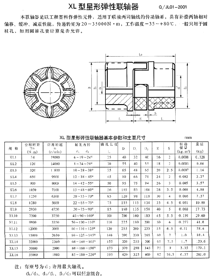 星形彈性雙法蘭聯(lián)軸器的適用范圍和性能特點(JB/T 10466-2004)